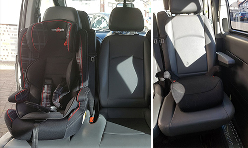 Although not always required by law (see gov.uk), we can provide child seats for extra comfort and your peace of mind when travelling with young children. Please mention at booking and we'll happily bring suitable child seats along.